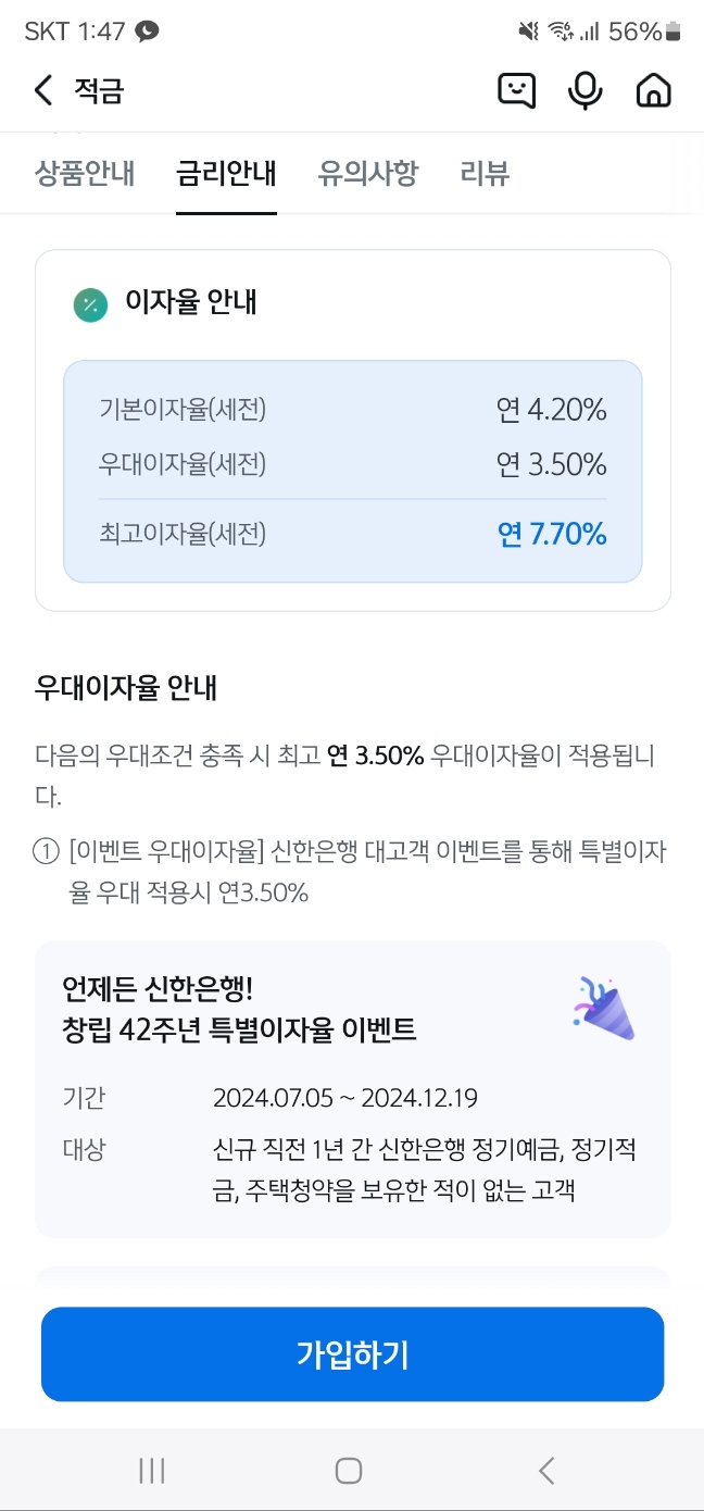 -이자율: 기본이자율 연 4.20% / 우대이자율 연 3.50% (최고이자율 연 7.7%)