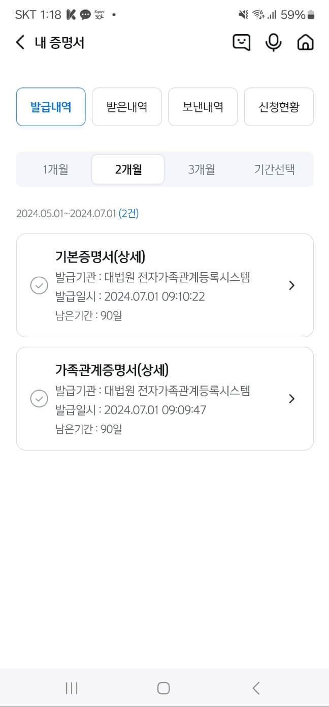 먼저 정부24에서 전자문서지갑을 발급하고 가족관계증명서와 기본증명서도 다운로드합니다. 전자문서지갑 및 증명서 발급 방법은 아래에서 확인 가능합니다.