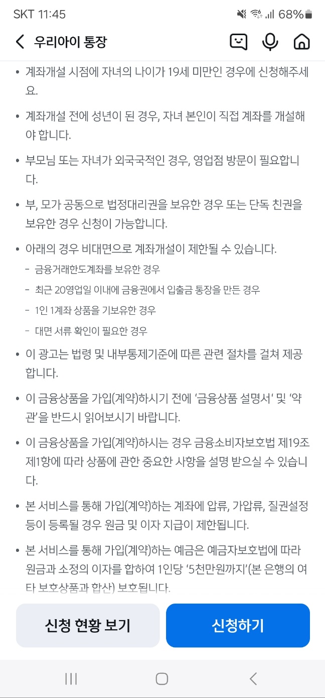 그러나 실물 통장을 갖고 싶은 경우에는 어차피 한 번은 은행에 방문해야 하기 때문에 아이의 첫 통장을 기념하기 위한 분들은 은행에 직접 방문을 추천드립니다.