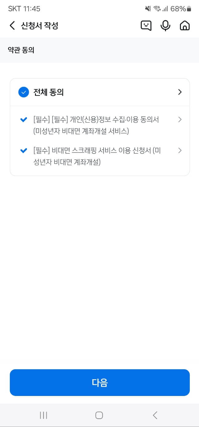 저는 어차피 은행에 방문하면 미성년자 계좌 개설의 경우 너무 사인할게 많고 체류 시간이 길어지기 때문에 집에서 미리 사전 작성 서비스를 진행했습니다.