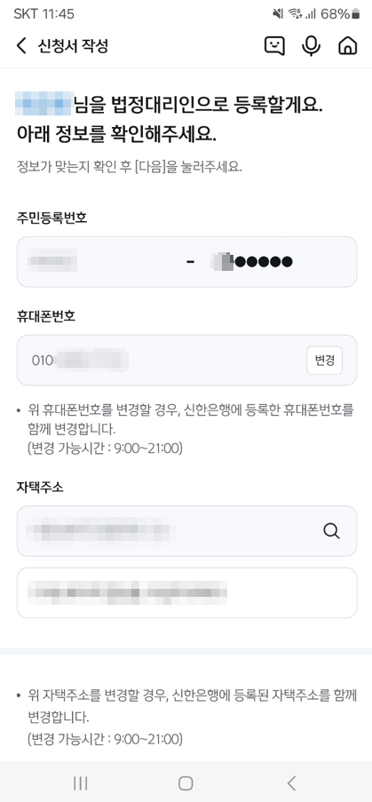 아이의 법정대리인으로 등록할 부모의 정보를 확인합니다.