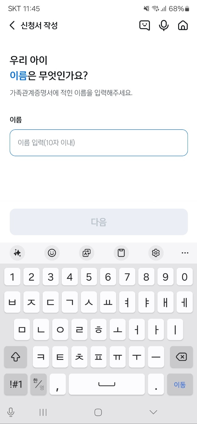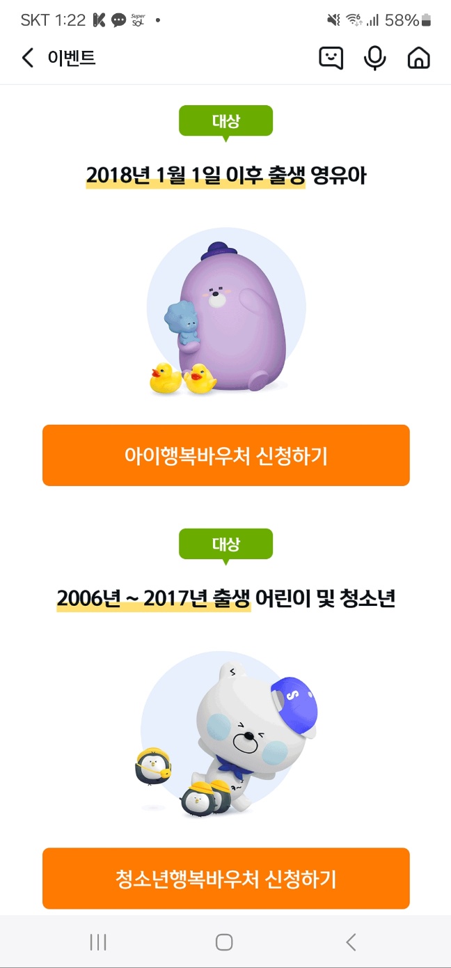 바우처 신청이 필요하신 분은 신한은행 어플에서 '바우처'라고 검색 후 아이행복바우처 → 리틀신한케어에서 신청 가능합니다.