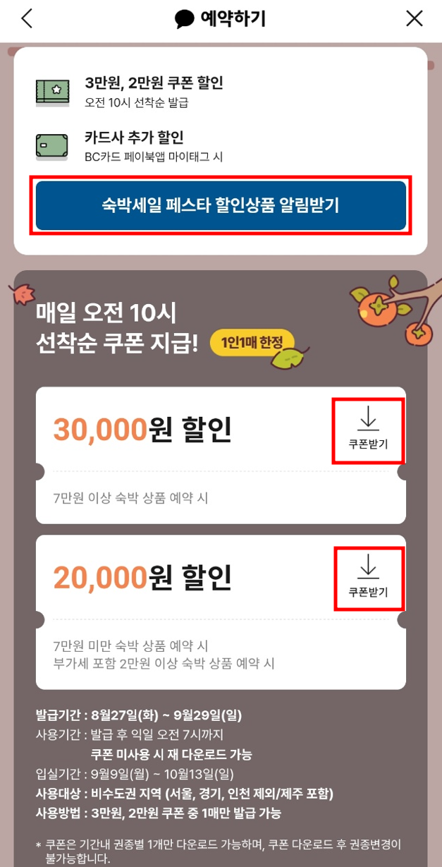 추석 숙박 세일 페스타 쿠폰발급 및 사용방법